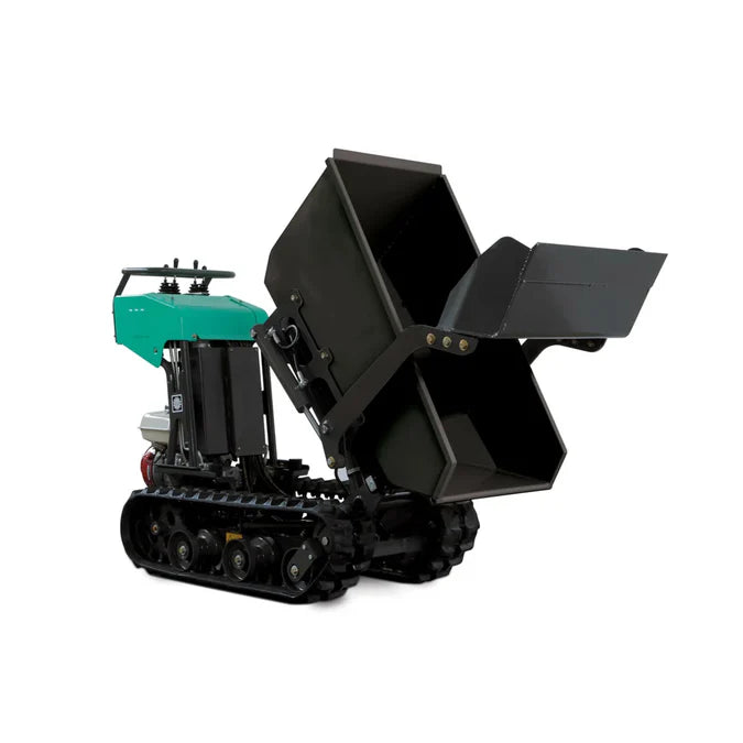 The buggy uses a hydraulic drive system with an auxiliary hydraulic power take‑off of around 3.75 gallons per minute, allowing smooth travel and controlled dumping operations. Hydraulic drive provides consistent torque to the rubber tracks, which is critical when climbing grades or working in soft or unstable conditions.