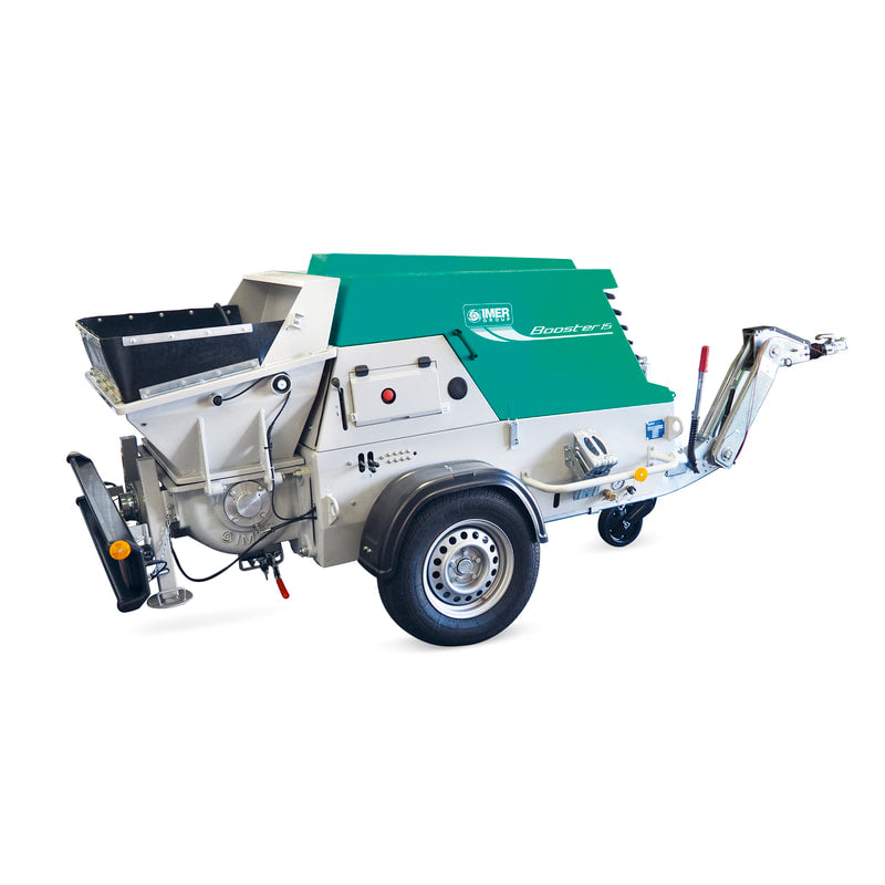 The IMER Booster 20 (formerly known as the Booster 15 in earlier branding) is a diesel concrete piston pump designed for concrete, shotcrete, and high‑strength grouts with aggregates up to 1 in. Its compact towable frame lets it operate in confined areas, such as urban jobsites, alleyways, and congested plants, while still delivering production rates typically associated with much larger pumps.