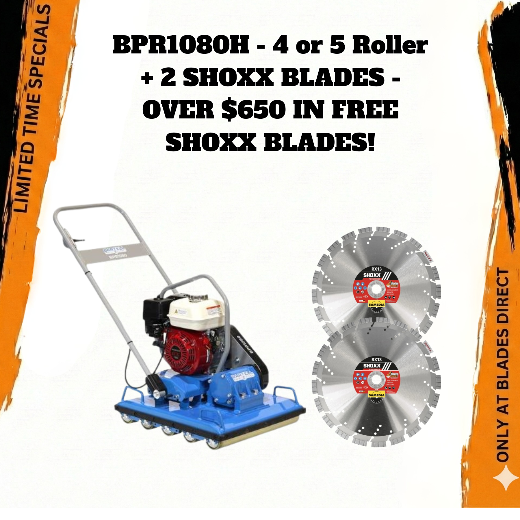 At the heart of the BPR1080H is a rugged frame supporting four or five precision rollers that apply even pressure across the surface. A powerful Honda engine drives the vibratory system, ensuring thorough compaction and a smooth, level finish.